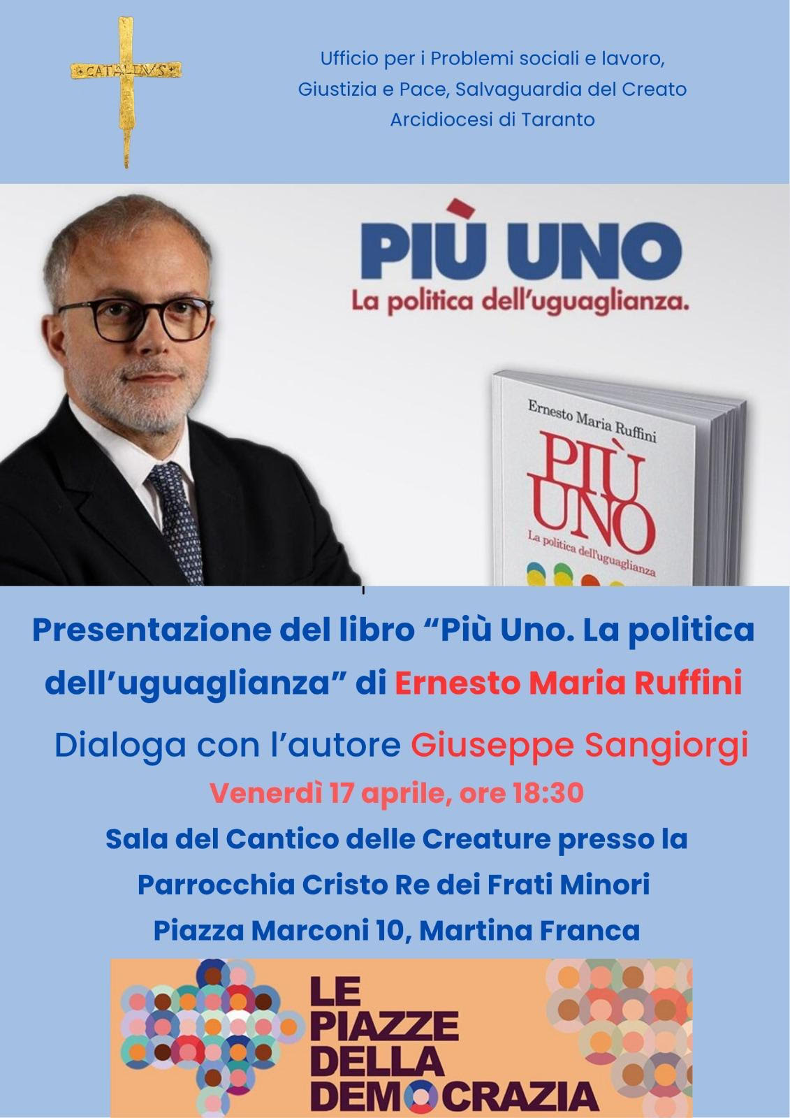 Ernesto Maria Ruffini venerdì 17 aprile sarà a Martina Franca per presentare il suo ultimo libro “Più uno. La politica dell’uguaglianza”, edito da Feltrinelli. Converserà con l’autore Giuseppe Sangiorgi, già direttore del Popolo, quotidiano della DC, e attualmente esponente di … Continua Presentazione del libro “Più Uno. La politica dell’uguaglianza” di Ernesto Maria Ruffini
